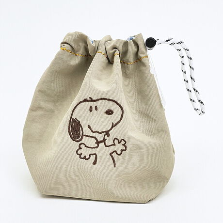 スヌーピー チェックリバーシブル巾着ポーチ ベージュ SNOOPY