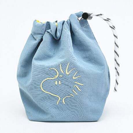 スヌーピー チェック リバーシブル巾着ポーチ ブルー SNOOPY