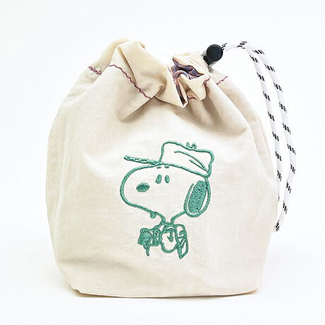 スヌーピー チェック リバーシブル巾着ポーチ アイボリー SNOOPY