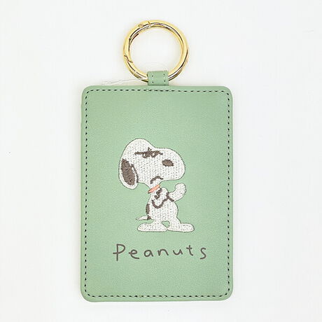 スヌーピー シングルパスケース 刺繍 グリーン SNOOPY