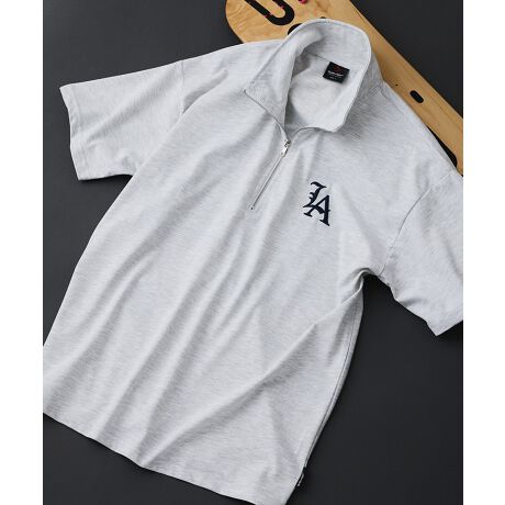 【SAVIER】×【ZERO STAIN】コラボ LAロゴ ハーフジップ Tシャツ