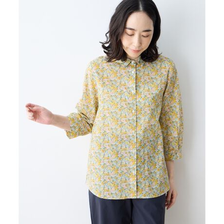[型番:493077]伝統的なスタイルで、上品さと華やかさを伝統的なリバティスタイルである、バラ、マーガレット、アサガオを繊細に描いたブラウス。華やかながらも上品で落ち着いたデザインが魅力です。柔らかな綿100%で着心地も良く、一枚はもちろん、重ね着や羽織りものとしても活躍します。