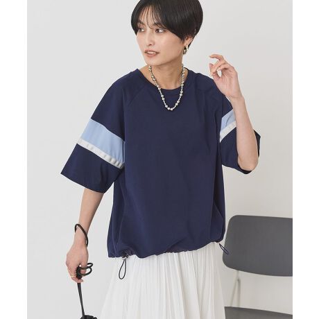毎年大人気の異素材切替がポイントのデザインプルオーバー。表面感の綺麗な素材を使用することでシックに仕上げ、肩の異素材部分はやや透け感のあるジョーゼット素材を重ね使いしアクセントに。ハリ感のある素材を使用した裾部分にドローコードが施されており、絞ることでシルエットの変化も楽しめます。襟ぐりはリブ仕様でコンパクトな印象に。シンプルなボトムスでもさりげなく映える一枚です。