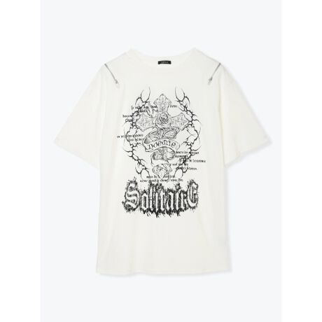 背面の羽刺しゅうプリントがコーディネートのアクセントになるTシャツ。