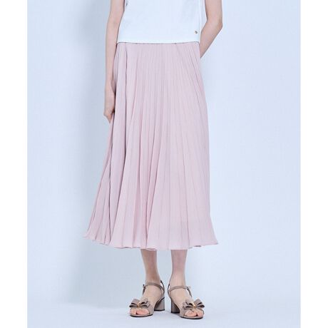 柔らかなニュアンスカラーが女性らしさを引き立てるプリーツスカート。