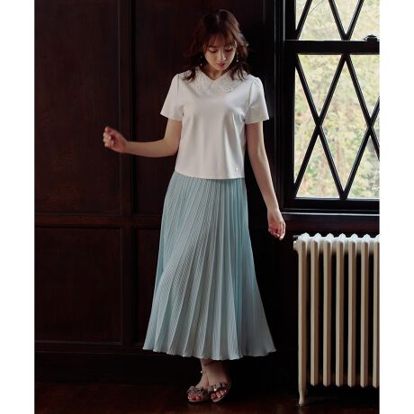 繊細な縦プリーツが美しいラインを描き、動くたびに軽やかでエレガントな表情を見せます。落ち感のある素材が広がりすぎず、すっきりとしたシルエットを演出。縦のラインを強調することで、自然なスタイルアップ効果も期待できます。