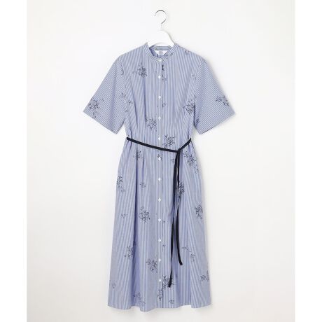 フロントタック×ストライプ花柄ですっきり映える上品ワンピース