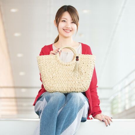 丸いハンドルがカジュアルな印象を与えるかごバッグ。