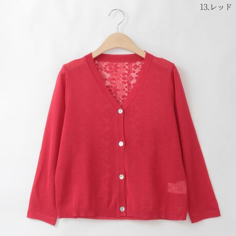 バックレースデザインニットカーディガン