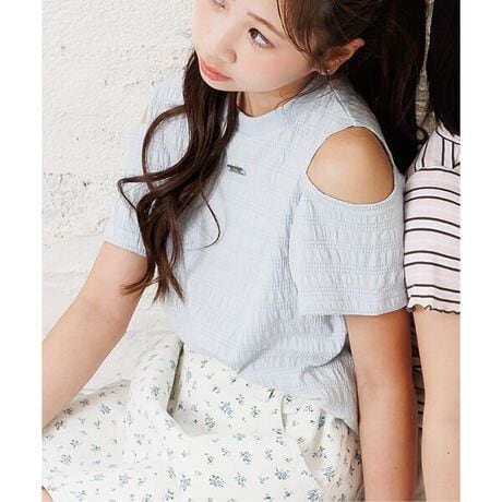 algy(アルジー)の半袖Tシャツ「【puchily プチプラライン】シャーリング肩あきT」。