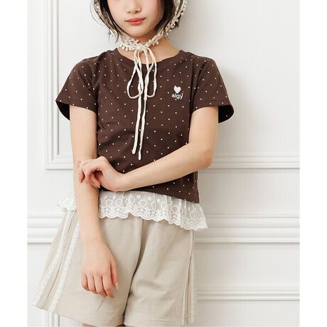 algy(アルジー)の半袖Tシャツ「【puchily プチプラライン】レースドッキングドットT」。