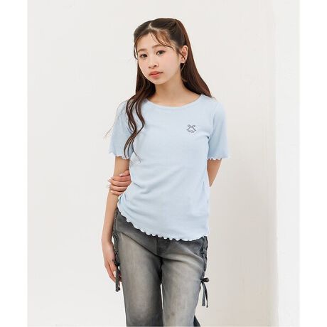 algy(アルジー)の半袖Tシャツ「【puchily プチプラライン】フリルリブT」。
