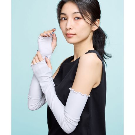 [型番:356103]ひんやり守る、夏の腕もとひんやりとしたタッチで心地よく使えるロングアームカバー。しっかりと腕を覆う丈感で、日差し対策に頼れるアイテムです。半袖トップスやワンピースに合わせて、軽やかな印象を保ちながら紫外線対策をプラス。デイリーからレジャーシーンまで幅広く活躍し、快適さと実用性を兼ね備えた一枚です。