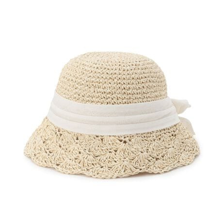 軽いかぶり心地と高い通気性が魅力的なペーパーハットです。お姉さんっぽいシルエットに大きなリボン装飾をあしらった華やかなデザイン。アクティブに動いても落下しにくい、あご紐つきなのもうれしいポイントです。すべり止め部分にはひんやりと感じる接触冷感素材を使用しています。内側にお名前を記入できるタグつき。
