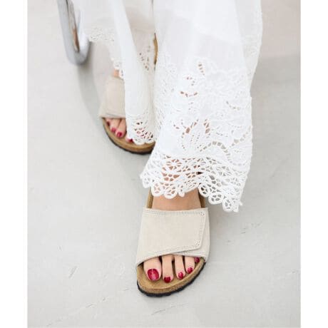柔らかなスエード素材で仕上げた、上品な佇まいのスリップオンサンダル。