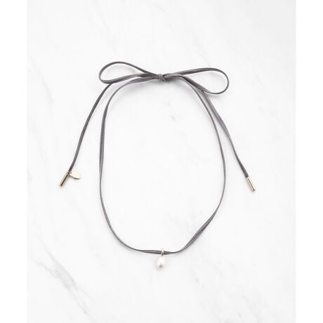 リボンは長めにしているので、チョーカーやロングなどお好みのレングスに調整したり、お手持ちのネックレスとレイヤードでコーディネートしたり、楽しみ方も自在。一粒でも存在感が際立つ、おすすめアイテムです。