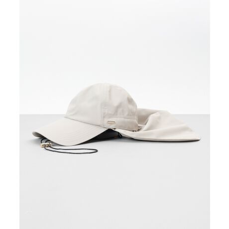 アクティブシーンにお勧めな垂れ付きキャップです。垂れ部分は取り外し可能、ラメ感のあるドローコードも華やかさと機能性を兼ね備え、取り外し可能です。つば中や垂れ部分には『東レ サマーシールド』生地を使用し、遮光遮熱性に富んでいます。生地には撥水加工が施されていて少しの雨でも対応できます。おでこに当たる汗止めすべりにはファンデーションの汚れが落ちやすい抗菌・防臭素材を使用で、サイズ調整が可能です。手洗い可能。