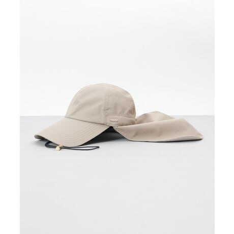 アクティブシーンにお勧めな垂れ付きキャップです。垂れ部分は取り外し可能、ラメ感のあるドローコードも華やかさと機能性を兼ね備え、取り外し可能です。つば中や垂れ部分には『東レ サマーシールド』生地を使用し、遮光遮熱性に富んでいます。生地には撥水加工が施されていて少しの雨でも対応できます。おでこに当たる汗止めすべりにはファンデーションの汚れが落ちやすい抗菌・防臭素材を使用で、サイズ調整が可能です。手洗い可能。