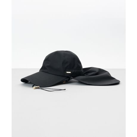 アクティブシーンにお勧めな垂れ付きキャップです。垂れ部分は取り外し可能、ラメ感のあるドローコードも華やかさと機能性を兼ね備え、取り外し可能です。つば中や垂れ部分には『東レ サマーシールド』生地を使用し、遮光遮熱性に富んでいます。生地には撥水加工が施されていて少しの雨でも対応できます。おでこに当たる汗止めすべりにはファンデーションの汚れが落ちやすい抗菌・防臭素材を使用で、サイズ調整が可能です。手洗い可能。
