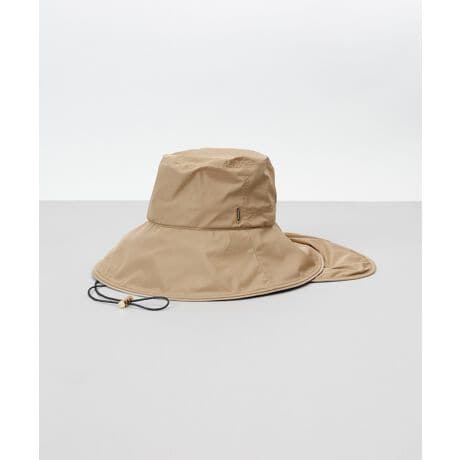 アクティブシーンにお勧めな垂れ付きハットです。垂れ部分は取り外し可能で、ラメ感のあるドローコードも華やかさと機能性を兼ね備え、取り外し可能です。つば中や垂れ部分には『東レ サマーシールド』生地を使用し、遮光遮熱性に富んでいます。おでこに当たる汗止めすべりにはファンデーションの汚れが落ちやすい抗菌・防臭素材を使用で、サイズ調整が可能です。手洗い可能。