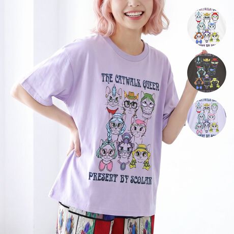 【個性が光るファッショニスタなネコちゃん柄Tシャツ】