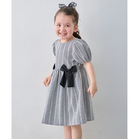 anyfam/anykids/エニィファム/エニィファムキッズ/キッズ/ワンピース/ストライプ/パフスリーブ/リボン/パフスリーブ/人気/通園/通学/おでかけ/デイリー/女の子/ガール/サスティナブル商品/トレンド