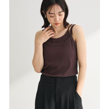 さりげないレイヤードで、いつもの装いを格上げシンプルながらもデザイン性のあるレイヤード風の肩ひもが特徴のタンクトップです。二重ストラップのディテールが、ベーシックなトップスにほどよいアクセントを加え、さりげないおしゃれを演出します。伸縮性のあるリブ素材を使用しているため、体にやさしくフィットし、動きやすく快適に着用できます。一枚で着ても自然なこなれ感があり、シャツやカーディガン、ジャケットのインナーとしても使いやすい万能アイテムです。デニムやスラックス、スカートなどさまざまなボトムスと合わせやすく、デイリーコーデからきれいめカジュアルまで幅広く活躍します。重ね着スタイルを気軽に楽しめる、着回し力の高い定番トップスです。