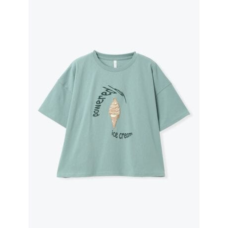 [型番:26410715039]立体感のある発泡プリントで仕上げたソフトクリームモチーフが目を引くTシャツ。やわらかなカラーとゆとりのあるシルエットで、デイリーに取り入れやすい一枚です。デニムを穿いてカジュアルにまとめたり、フレアスカートを合わせて軽やかに仕上げる着こなしもおすすめです。Hare no hi/ハレノヒ