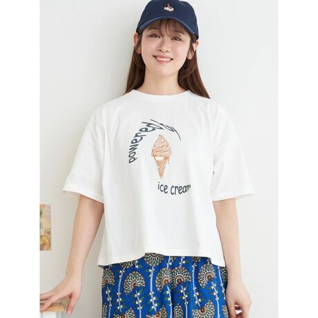 [型番:26410715039]立体感のある発泡プリントで仕上げたソフトクリームモチーフが目を引くTシャツ。やわらかなカラーとゆとりのあるシルエットで、デイリーに取り入れやすい一枚です。デニムを穿いてカジュアルにまとめたり、フレアスカートを合わせて軽やかに仕上げる着こなしもおすすめです。Hare no hi/ハレノヒ