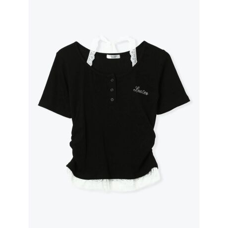 レースリボンヘンリーネックトップス