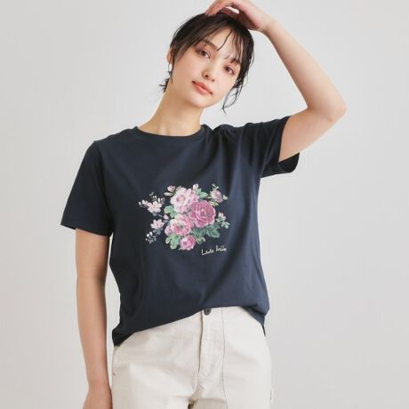 胸元に描かれたアンティーク調のフラワーブーケが目を引くカットソーです。