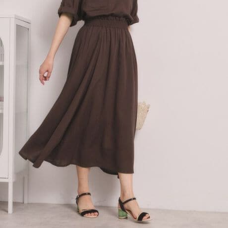 清涼感あるリネン混素材のギャザースカート。