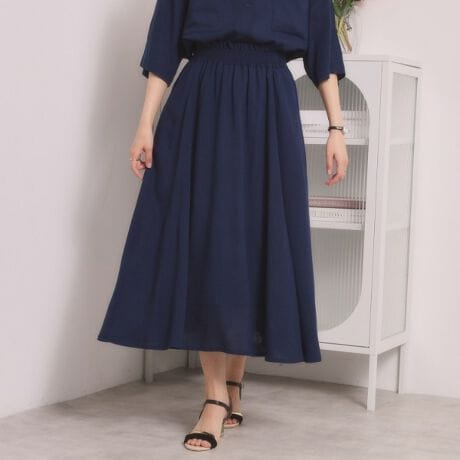 清涼感あるリネン混素材のギャザースカート。