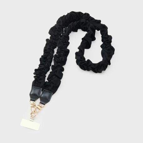 ふんわりギャザーを寄せた、くしゅくしゅ感が愛らしいスマホストラップ。