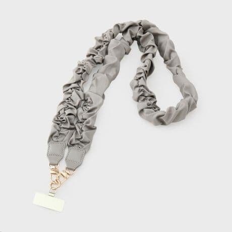 ふんわりギャザーを寄せた、くしゅくしゅ感が愛らしいスマホストラップ。
