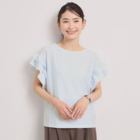 袖のフリルは端をメロウ始末にすることで軽やかに仕上げました。