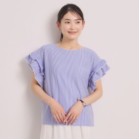 袖のフリルは端をメロウ始末にすることで軽やかに仕上げました。