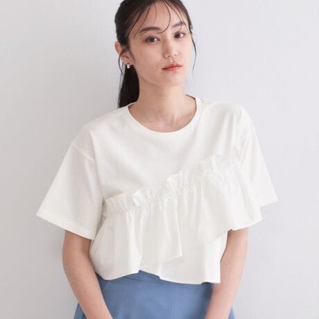 マルイウェブチャネル   /   オペークドットクリップ   /   トップス   /   Tシャツ・カットソー   /   UV アシメフリルドッキングカットソー【接触冷感/洗濯機OK】