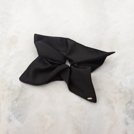 一般的なシュシュと異なり、特徴的なスクエア折りのディテールが、ヘアスタイルに個性をプラス。