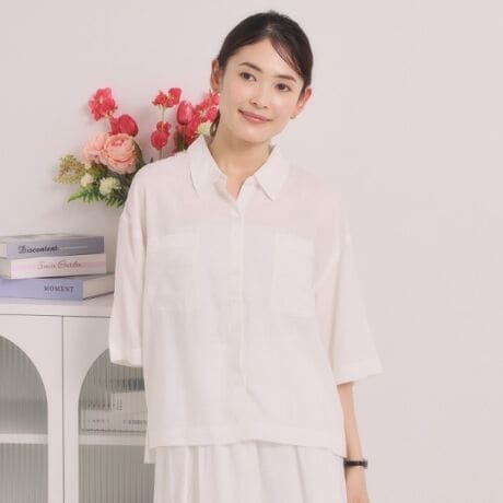 清涼感あるリネン混素材のシャツ。