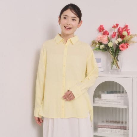 レーヨン素材のしなやかさと柔らかさに、リネン混ならではのシャリみを加えた夏らしい清涼感ある素材が魅力。