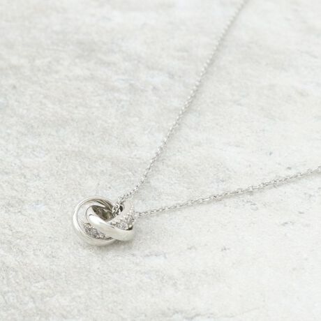 小ぶりのロンデルトップが首元に上品なきらめきを添えるネックレス。