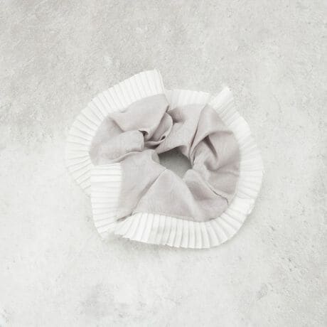 細かなプリーツが立体感を生み、シンプルなまとめ髪でも印象的な仕上がりに。