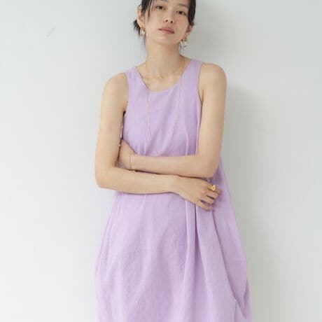 身体のラインを拾いにくく、背中のさりげない開きが抜け感を添える1枚で絵になるワンピース。