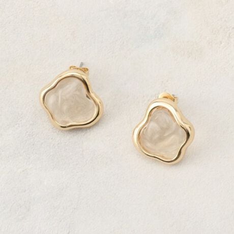 透明感のある表情で横顔を洗練させる、ニュアンスシェイプのクリアカラーピアス