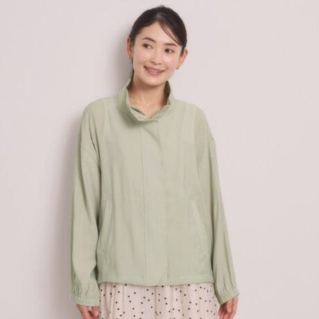 洗練された大人モードな雰囲気が作れるスタンドネック仕様のブルゾン。