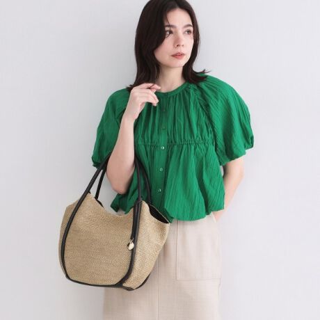 ナチュラルなPP素材とシックな合皮素材を組み合わせた、軽やかさと上品感が調和するデザイン。