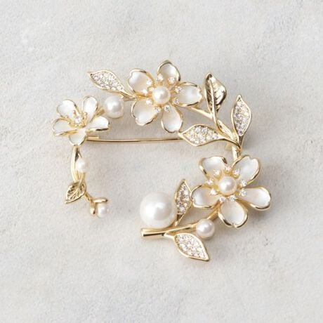 花冠のように輪を描く、華やかでやさしい印象のブローチです。