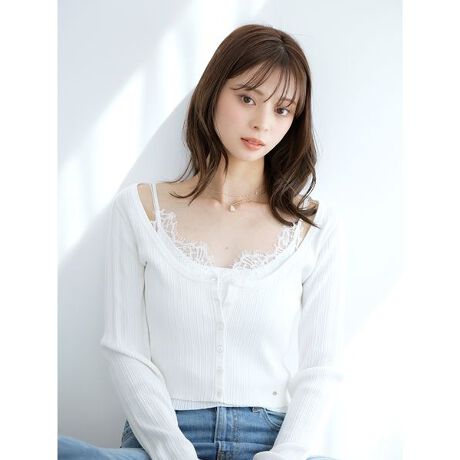 ・カーディガンとキャミソールがセットになった、着るだけでレイヤードが完成するアイテムです。