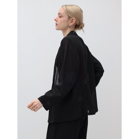 ほんのり透け感のある軽やかな素材で仕立てたテーラードジャケット。ダブルブレストのきちんと感に、シアーな質感が抜け感をプラスし、かしこまりすぎない大人のバランスに仕上げました。程よくゆとりのあるシルエットで、さらっと羽織るだけでこなれた印象に。軽やかな着心地で、季節の変わり目や冷房対策にも活躍します。同素材のボトムと合わせたセットアップスタイルはもちろん、デニムなどと合わせたカジュアルミックスもおすすめの一着です。